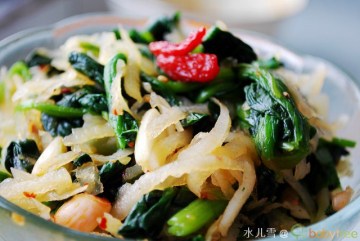 3、拌菜喽,葱姜蒜,糖醋盐,嘻嘻。吃喽喽