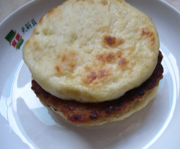 8.面饼也可以从当中切开,把肉饼夹在中间,这就是肉夹馍了。