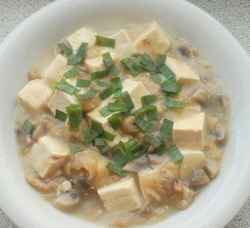 津冬菜 50g,南豆腐 300g,香葱 1棵,干香菇 4朵,盐 1茶匙(5g),白砂糖 1/2茶匙(3g),油 1汤匙(15ml),水淀粉 1汤匙(15ml),高汤 100ml