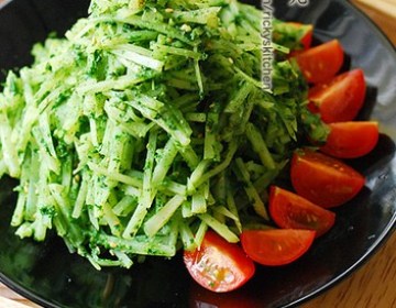4.然后把泥放入土豆丝,拌匀装盘即可
