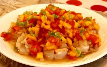 6。番茄丁红萝卜丁和芒果丁放一起加盐,少许白沙糖调味