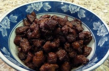 12、直到酱汁浓稠,每块五花肉上都裹着酱汁即可。