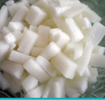 作法: 白萝卜切块, 洒上少许盐,放置半小时,待流出液体之后洗掉,再加适量的糖及醋,