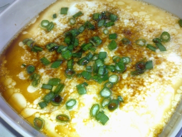 6. 灑上蔥花,可隨意加少許生抽,滑不溜口的蒸蛋完成上桌。