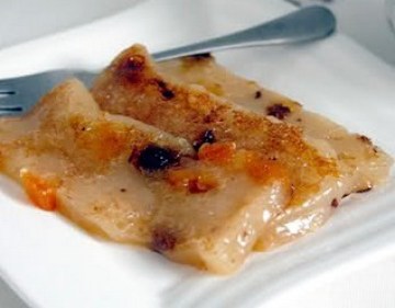 干果切丁后用开水洗洗沥干(洗过后的干果味道和颜色都好些),然后加点糯米粉拌拌。糯米粉分2等份,一杯份加热水(水开后放3方钟)做成烫面团,待用。奶油放不粘锅里加热,倒入白糖,干果丁和糖桂花,炒一小会儿,再加入剩下的另一份糯米粉,炒匀关火,稍凉后趁热和烫面团揉匀,然后放在糕盆里,用硅胶铲压平,放在笼屉里蒸30-40分钟,即可。