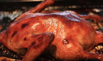 2. 最后1小时是关键。上色都在基本在那个时间段发生。因此要勤检查烤箱里的鸭,发现有局部烤糊的迹象,就拿出来盖上锡箔纸保护。
