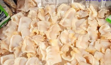 2.热水滚开后放象拔蚌入热水浸一分钟,立即拿出快速用手大力脫皮擦净污垢,再回放入冰水两分钟後象拔蚌就会变僵硬