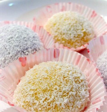 5、熟的粉团非常粘,没法用手直接包。我是用抹了沙拉油的保鲜膜隔着包的。用筷子挑一团粉团,放在保鲜膜里包着揉成团,再压平,包入馅儿,封口搓圆,放到椰蓉中打个滚就成了。