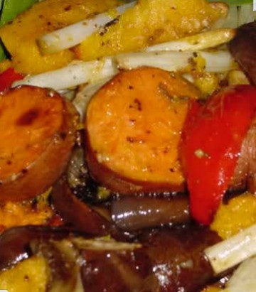 南瓜,野甜薯,红甜椒,茄子,白芦笋,意大利青瓜,嫩菠菜叶,potorbello蘑菇,橄榄油,意大利混合香料,黑胡椒,海盐