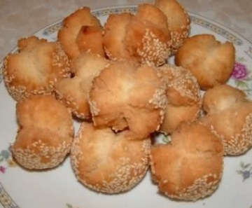 面粉160克,糖40克,芝麻20克,油40克,蛋60克,小苏打1克