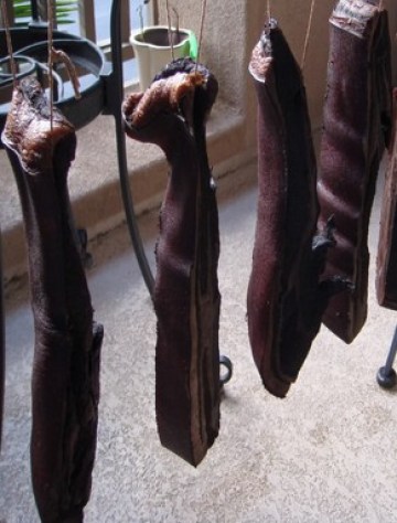 四条用韩国店买的粗海盐腌三天, 也挂起来,