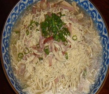 鸡丝,火腿丝,豆干丝 姜,料酒 鸡汤