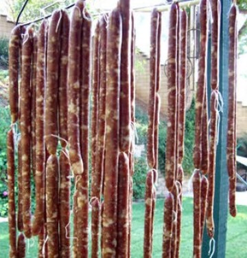 9. 灌好的干肠晾在通风处,白天拿出去。晚上拿进来,干躁的天气晾三天就可以了 .( 而且要看肠衣的粗细,粗肠子可多晾一两天 )