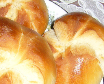 3、做型:将面团分割成剂子,搓成长条,转动折叠成五瓣,尾压在第一个折印的下方;