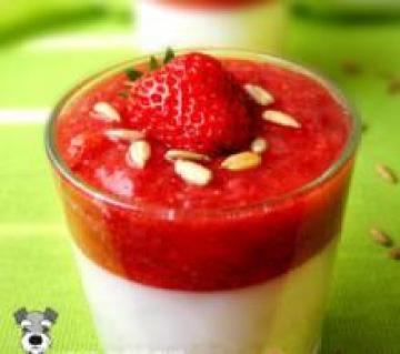 ● 果冻固化后将模外侧置于温水中温一下,将果冻取出盛于器皿中,浇上果汁并用水果装饰。