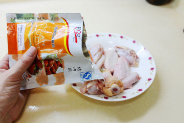 你可以按包装说明 100:7:5的说明加入烤肉料,我是根据自己以前烤肉经验放的烤肉料,根据个人口味大概掌握在每公斤鸡翅大概50-70克腌料