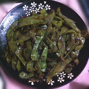 2.锅入较多油,油热后下扁豆不断煸炒,其间不能加水。