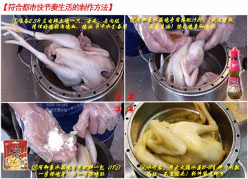 一、鸡搽御豪水晶鸡专用配料和花生油的时候要在蒸盘里操作,不能让配料和花生油漏掉,否则会不够味;