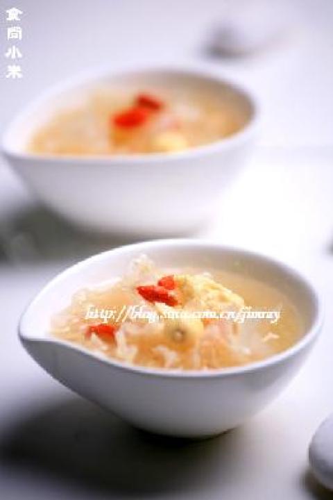 银耳,枸杞,鹌鹑蛋,醪糟,莲子,调料:冰糖,蜂蜜