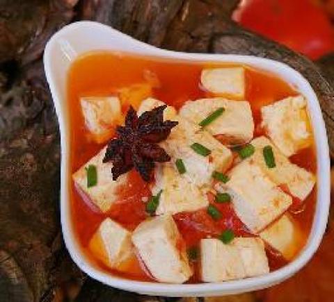 西红柿1个,老豆腐1块,姜5克,葱2根,大料2个,盐2克
