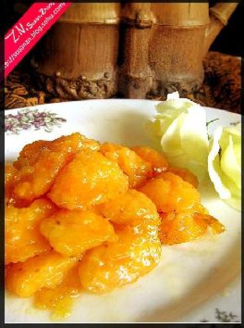 南极鲜虾1/2杯,樱桃罐头糖汁1大匙,麦芽糖2大匙,盐1/3小匙