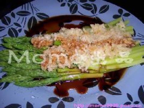 芦笋150克,蒜茸适量,熟油适量,生抽适量