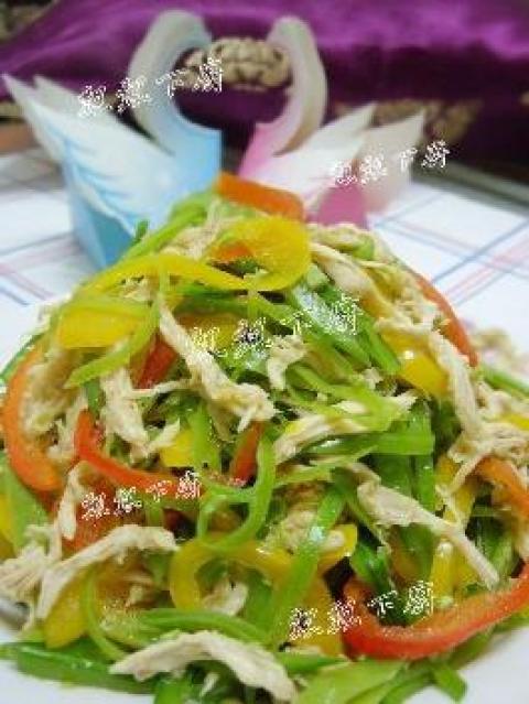 第二种:美食美味的彩椒荷兰豆烩鸡丝做法