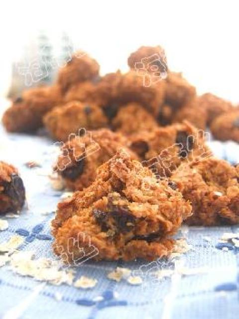 1.将燕麦,椰丝和葡萄干放在同一容器里,拌匀;