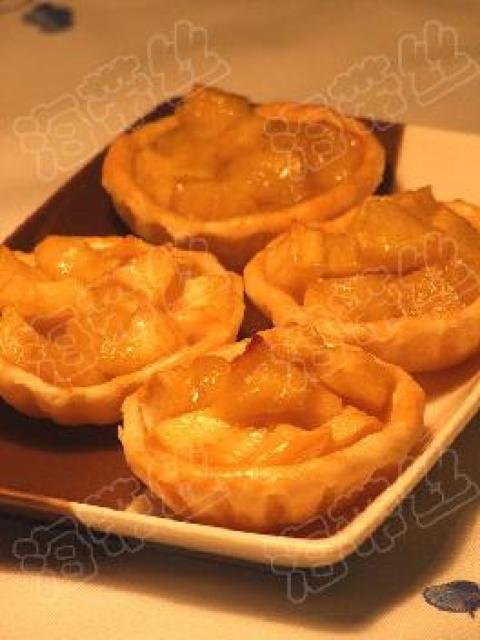 塔馅:,苹果650克,糖3大匙,塔皮:,中筋面粉150克,盐0.25小匙,黄油75克,水55-60毫升