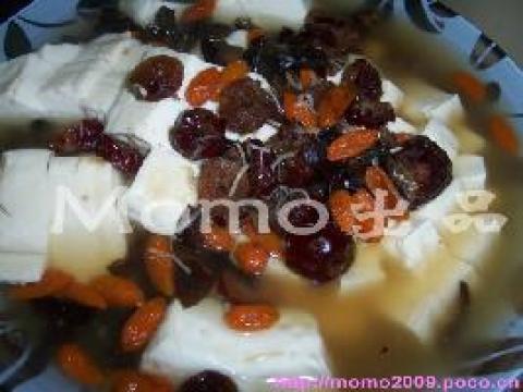 第一种:美食美味的木耳红枣杞子蒸豆腐做法