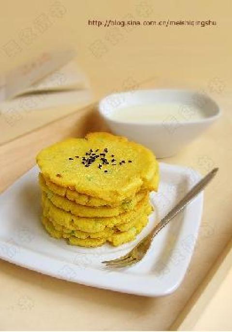 4.起锅,倒入少许油,油热后,把豆渣做成的小饼放入锅中,小火慢煎,两面金黄就好了。