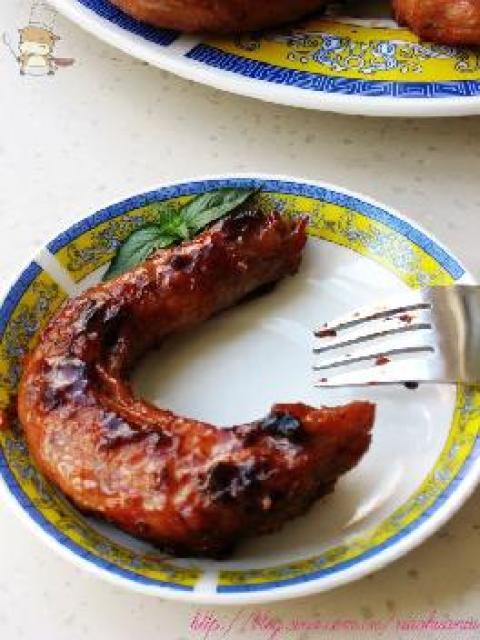 鸡脖子10根,李锦记叉烧酱3小匙,调酒2小匙,盐0.25小匙,糖0.5小匙,色拉油适量,蜂蜜水适量