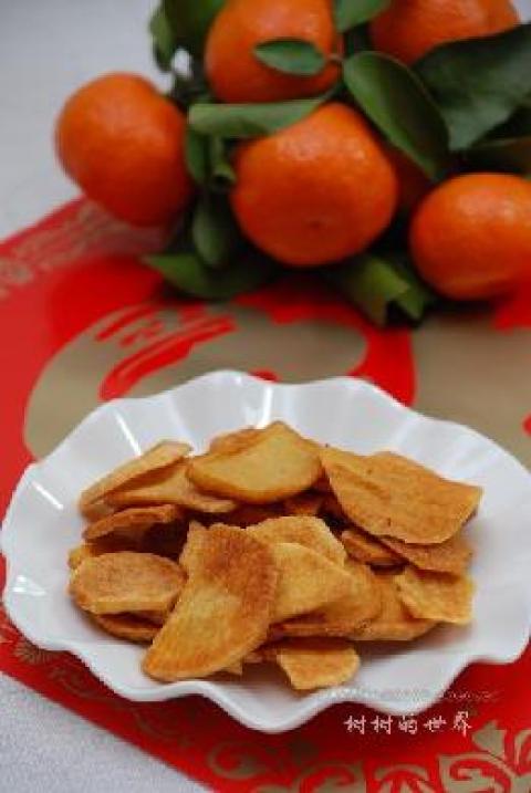 2.开油锅,把油烧热,放进慈姑片用中小火炸至硬身捞起,再用中火返炸至金黄色慈姑含丰富淀粉容易粘在一起,所以放的时候要一片一片放。