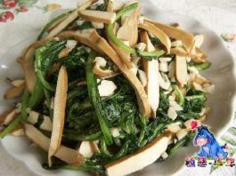 材料:豆干10片,笋半根,香菇5朵,茼蒿1斤
