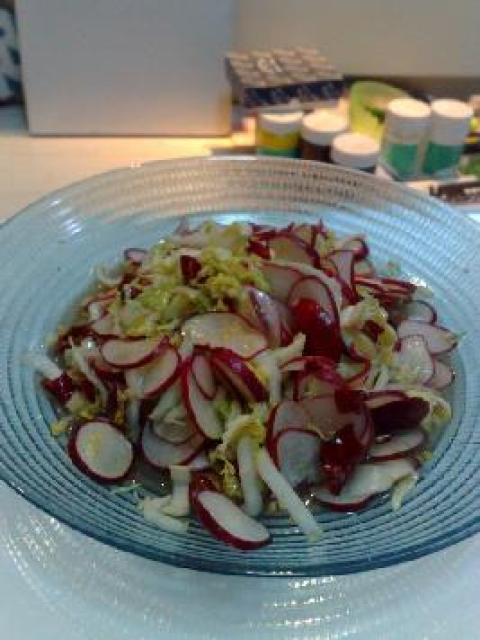 陈醋,蒜蓉,花椒,味精,砂糖,精盐,小红萝卜,白菜菜心
