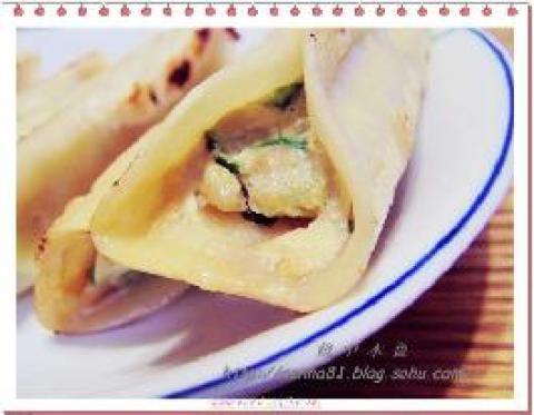 2.只要中间放上馅,把两边稍微捏紧,不用封口就可以了,比做饺子样子的锅贴方便多了。