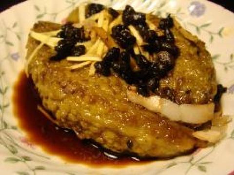 2.放三层肉丝,姜丝,豆豉,酱油,酒少许,放入锅中蒸焖至软入味.