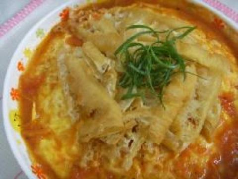 最好是用刚炸好的油条来做这道菜。香脆可口的油条配上酸甜开谓的番茄汁,还有鲜嫩的鸡蛋,让我吃得停不了口。