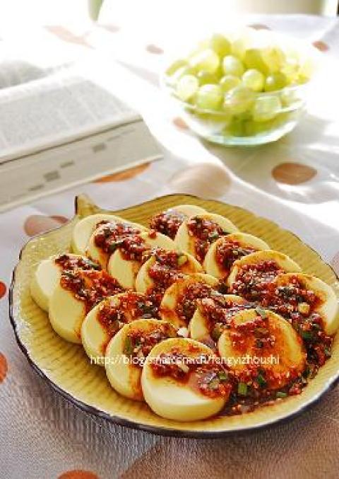 玉子蛋豆腐两条,葱花3大匙,蒜末2大匙,熟白芝麻1大匙,香油1大匙,生抽3大匙,醋2大匙,韩国辣椒粉1小匙,黄砂糖2大匙