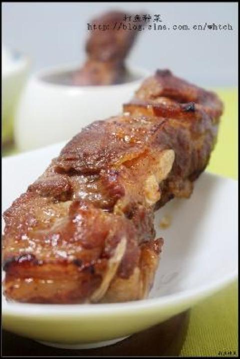 3.烤好的猪面肉切片装盘就可以了。猪面肉的口感非常好,有点弹性,吃起来又香,不错。