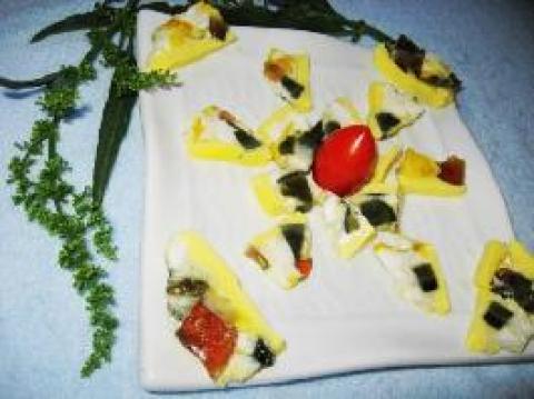4.将蒸好的太阳蛋倒在菜板上放凉,改刀切片后即可食用。