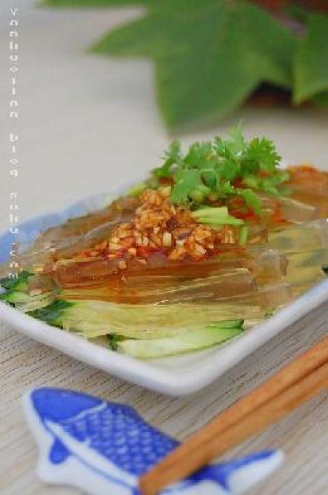 石花菜凉粉,黄瓜,香菜,生姜,蒜头