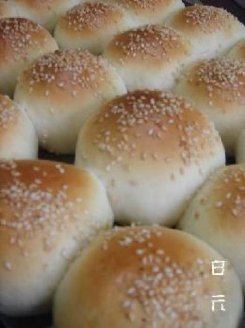 4.将所有原料放入面包机,放入掰成小块的烫种揉面到扩展阶段基础发酵把面团分成20份松驰10分钟包上豆沙团整形 .进行最后发酵.发酵完成后刷上蛋液撤上芝麻。