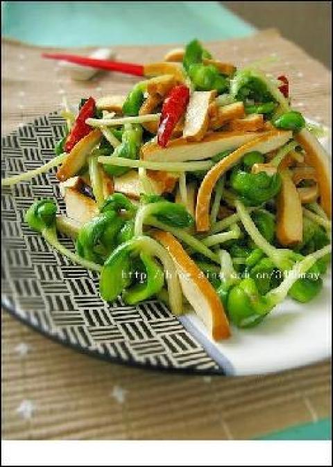 青豆芽,豆干,干辣椒,蒜头