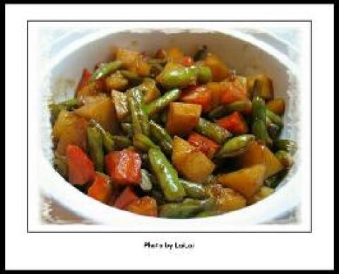 1.把土豆,胡萝卜切滚刀块,豆角掰成段。