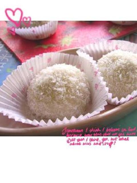 4.最后,沾上一层椰蓉,就大功告成了。