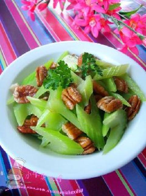 西芹,核桃仁,大蒜,盐,黑胡椒粉