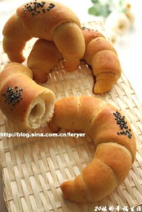 11.出炉的牛角松软,有层次,表面金黄,晾凉食用,密封保存。