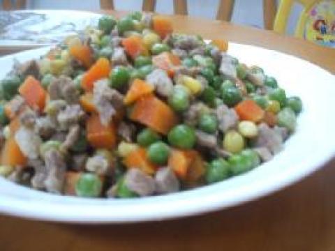 青豆仁,胡萝卜,玉米,蒜头,沙茶调料