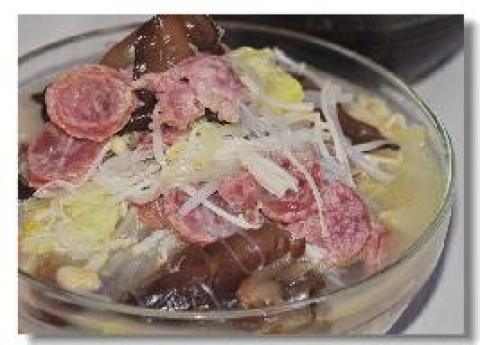 丝粉,木耳,腊肠,金针菇,白菜,豆芽